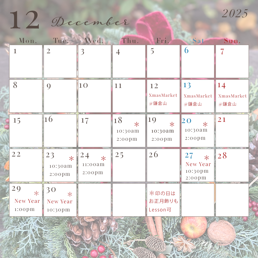 Regular Lessonの日程にて、お正月飾りを作るレッスンを行います。